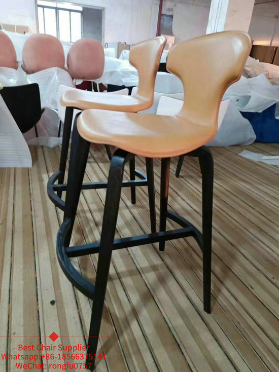 New Design Modern Restaurant Furniture Wooden Yellow Seat Bar Stool Chair
